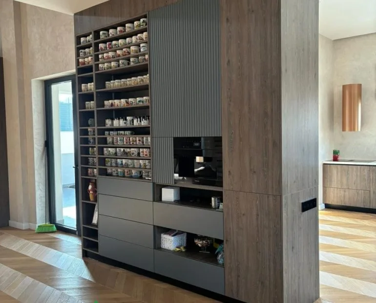De la biblioteci și vitrine elegante, până la corpuri TV integrate, totul este creat pentru confort și estetică.